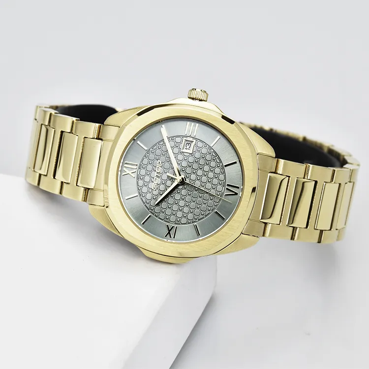 | Dial | Stamped dial + applied H indices + 3H date window with applied frame + silk screen printing |